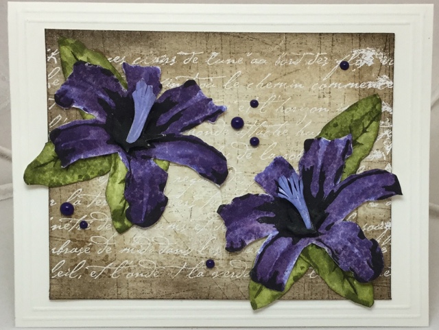 When the ice pellets were falling down hard, I was in my craft room working on this card. First I stamped all the flowers seperate on watercolor paper and cut them out, then I layed them out on my white cardstock and stamped the stems, arranging the flowers, some are popped up. Then I cut around the top...and then...then I messed it up,grrrr, I had not used my wink of Stella pen in ages and I don't know what happened, but it was not good......so then I put stickles on top to cover it up and I guess it's okay.